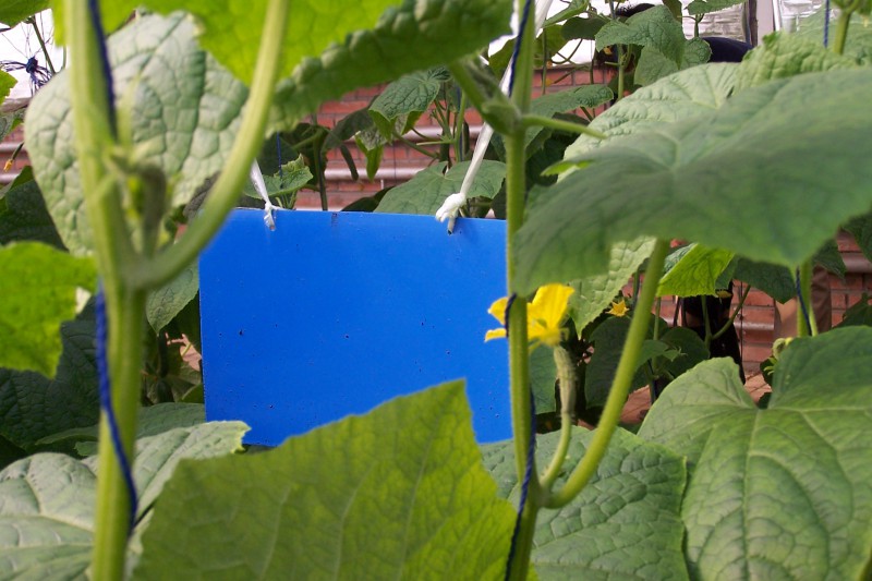 3、在植物上使用懸掛高度建議高度植物頂端15-30cm左右,蔓生或高桿作物生長點接近棚頂時,可將色板懸掛于植株高度的中上部。