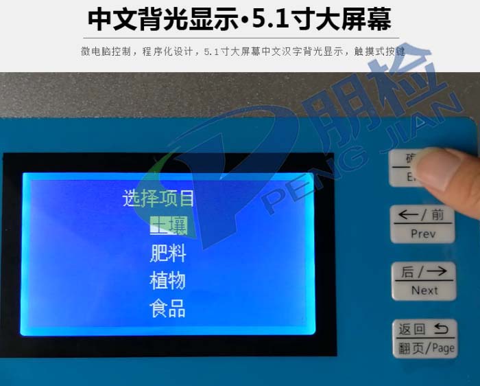 在第四代設計中,儀器重回經典面板式主機;無需空白和標準校準,一鍵式操作,直接讀取數據;5.1寸大屏幕中文背光顯示;可檢測土壤33項、肥料31項、作物32項、食品15項共111個測試項目。
