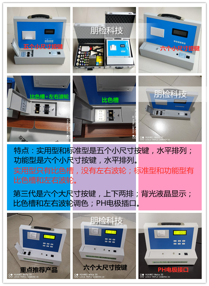 PJ-TSY/FSY實(shí)用型,也叫PJ-FYB,PJ-TYB,PJ-T02,PJ-F07等不同型號(hào),可以檢測(cè)土壤銨態(tài)氮、硝態(tài)氮、有效磷、速效鉀、有機(jī)質(zhì)、全氮、全磷、全鉀、水份、含鹽量、pH、堿解氮等項(xiàng);有機(jī)肥、生物有機(jī)肥、微生物菌肥等有機(jī)類肥料全氮、全磷、全鉀、有機(jī)質(zhì)、腐殖酸、酸堿度(pH);以及鈣、鎂、硫、鐵、錳、硼、鋅、銅、氯、硅、鉬等各種中微量元素。
