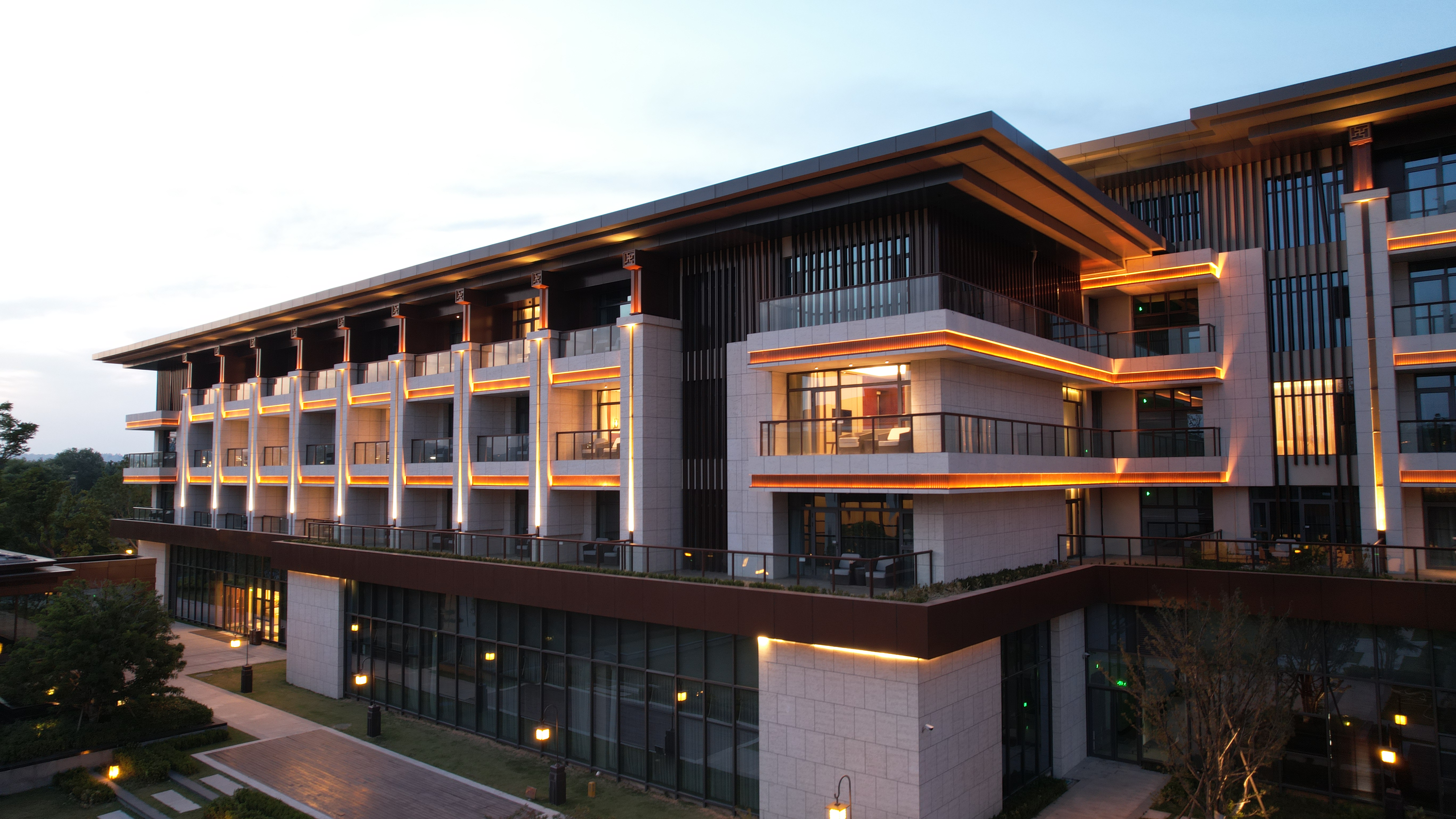 伊水迎賓館以北魏洛陽(yáng)皇家林園—華林園為設(shè)計(jì)靈感來(lái)源,遵循自然山水意境設(shè)計(jì)風(fēng)格,打造優(yōu)美的低密度的園林式酒店。酒店主體建筑材料以暖灰色鋁板,米黃色石材為主,造型上通過(guò)實(shí)木構(gòu)架及隔柵,打造古香古色、獨(dú)具韻味的建筑空間,盡顯洛陽(yáng)名城的深厚文化底蘊(yùn)。建筑泛光照明采用間接光的照明方式,以局部投光和光影交融的手法,依據(jù)建筑平面布局及立面展示條件進(jìn)行差異化照明。燈光重點(diǎn)表現(xiàn)外立面溫和明快的米黃色材料為主,搭配磚紅,磚黃及灰白色,延承洛陽(yáng)城市主色調(diào)和文化厚重感,燈光做到“見(jiàn)光不見(jiàn)燈”時(shí)燈具盡可能隱蔽安裝。燈光表現(xiàn)建筑頂部、外立面,窗間墻內(nèi)透燈光,建筑造型簡(jiǎn)潔內(nèi)斂,細(xì)節(jié)處彰顯建筑品質(zhì)。在業(yè)主單位、設(shè)計(jì)單位和施工單位的共同努力下,完成了對(duì)整體泛光照明項(xiàng)目的驗(yàn)收工作,贏得了各級(jí)領(lǐng)導(dǎo)及相關(guān)配合單位的認(rèn)可,為城市增添了一抹亮麗的色彩。